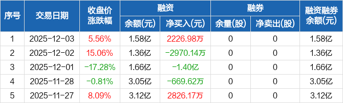爱科赛博:融资净买入2226.98万元,融资余额1.58亿元(12-03)
