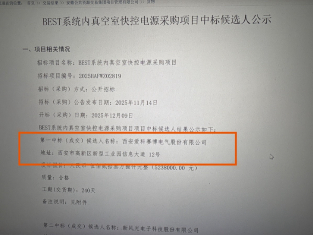$爱科赛博(SH688719)$ 中标了,核聚变实力选手,甩英杰电气几条街。。。