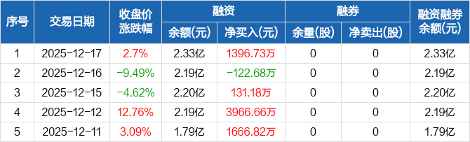 爱科赛博:融资净买入1396.73万元,融资余额2.33亿元(12-17)
