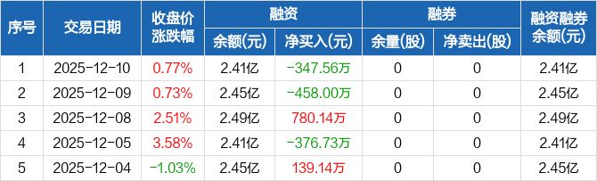 艾森股份:融资净偿还347.56万元,融资余额2.41亿元(12-10)