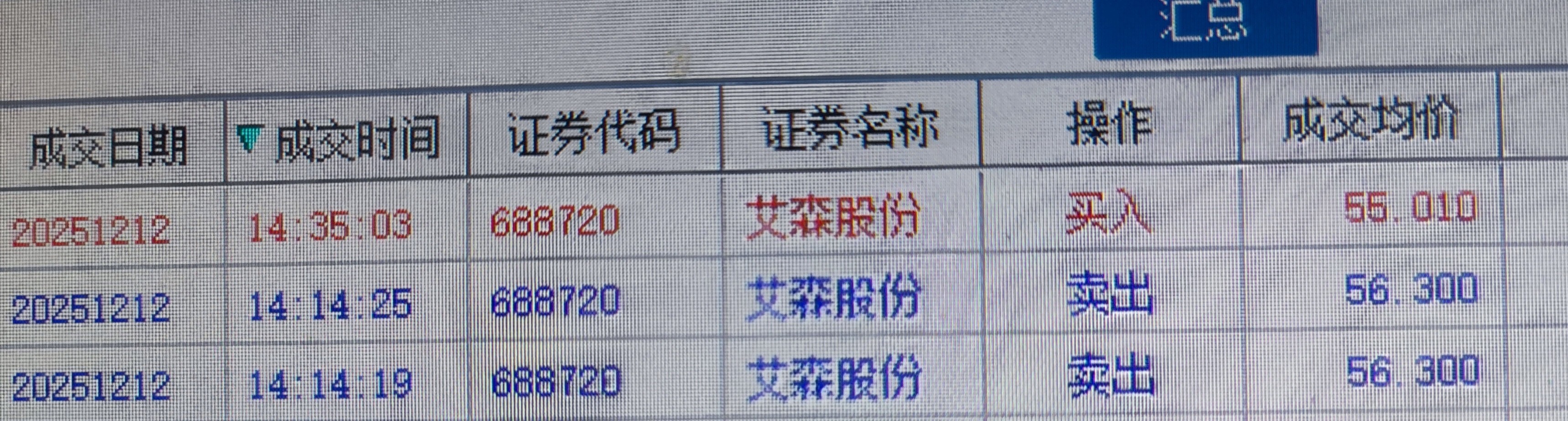 $艾森股份(SH688720)$ 56.3减仓后,随手挂了个55的单子,分时显示最低价55.65,我这单怎么成交的?
