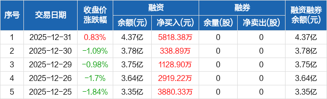 艾森股份:融资余额4.37亿元,创历史新高(12-31)