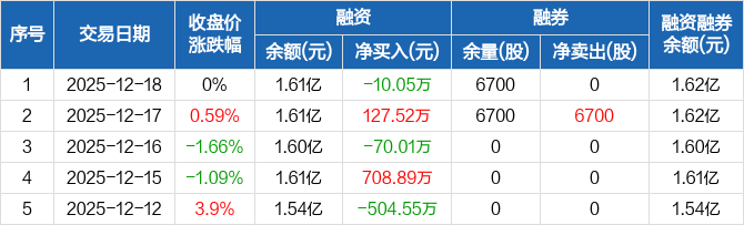 龙图光罩:融资净偿还10.05万元,融资余额1.61亿元(12-18)