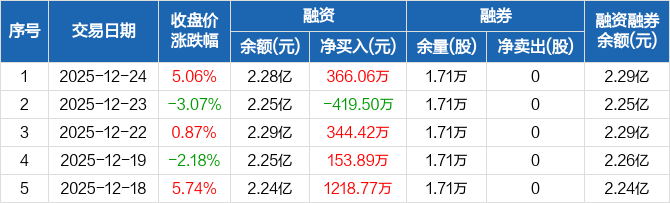 同益中:融资净买入366.06万元,融资余额2.28亿元(12-24)