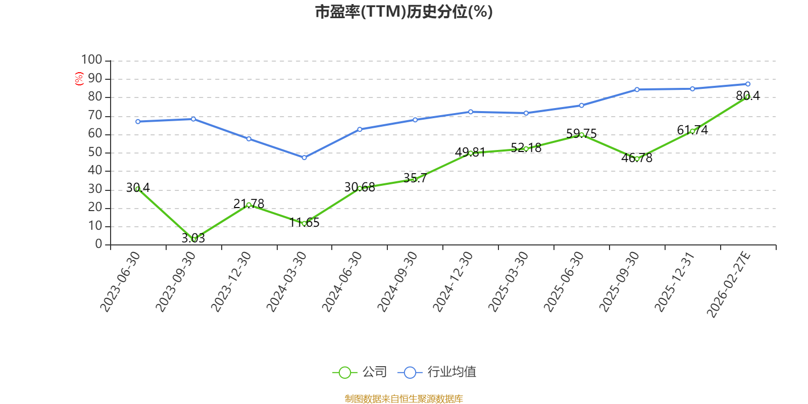 市盈率、市净率为负时,不显示当期分位数,会导致折线图中断。