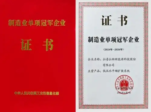 根据广东省工业和信息化厅、深圳市工业和信息化局官网公示名单,拉普拉斯新能源科技股份有限公司获评第八批国家级制造业单项冠军企业。