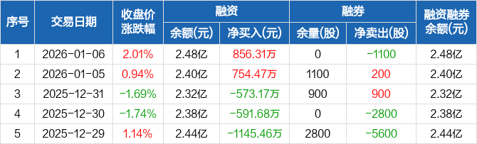 拉普拉斯:融资净买入856.31万元,融资余额2.48亿元(01-06)