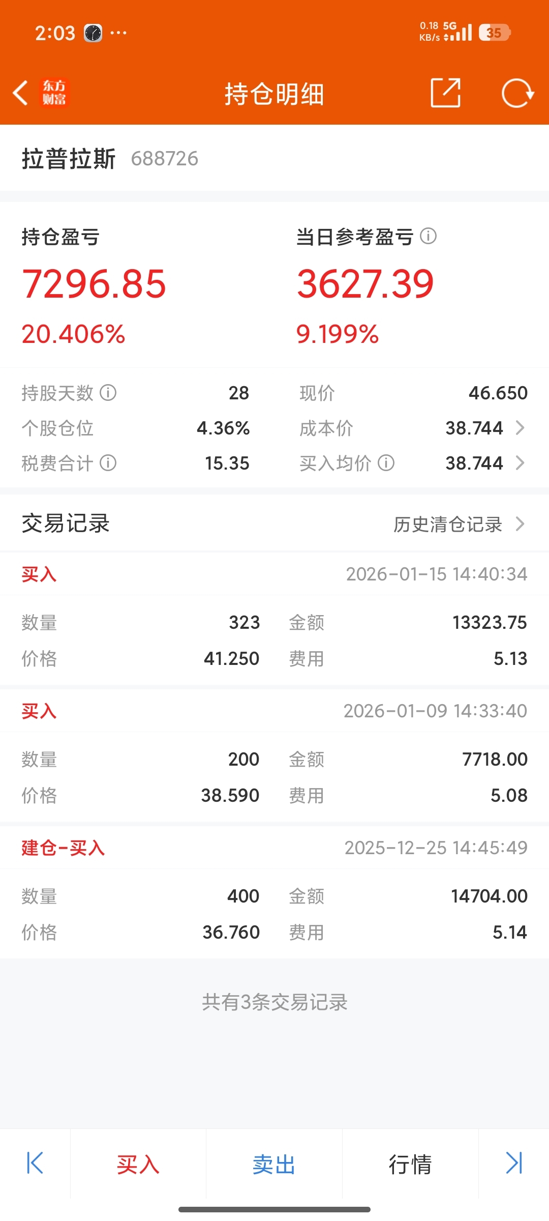 $拉普拉斯(SH688726)$ 买入成功,享受起飞