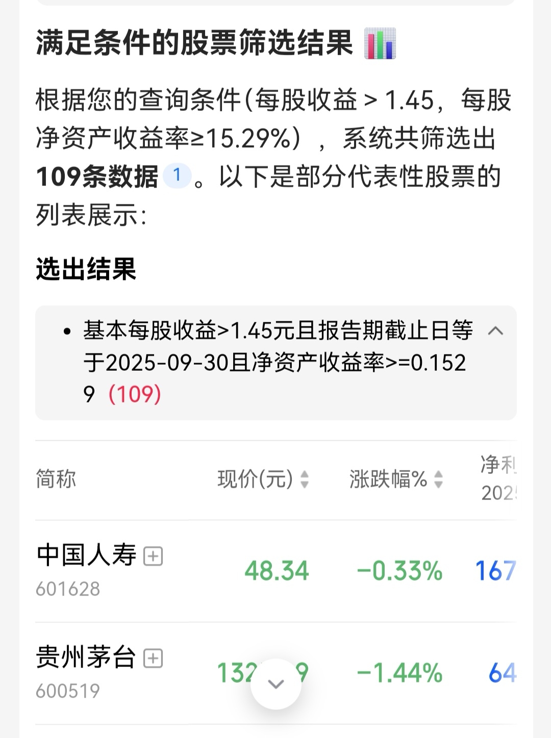 //@南墙投资 :同花顺排名81,东方财富排名111。//@南墙投资 :更正:每股收益>1.45。每股净资产收益率>15.29%。全市场81位。