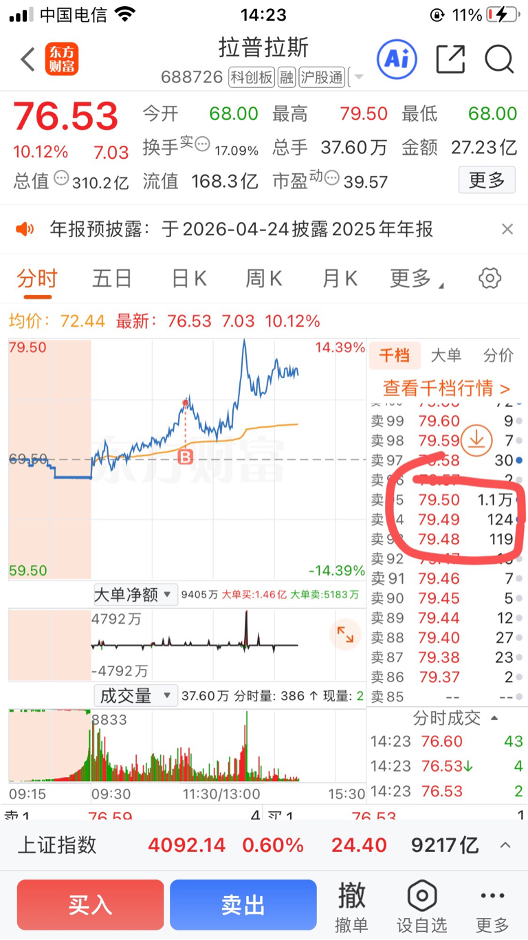 $拉普拉斯(SH688726)$ 万手哥压盘,汪汪队不让涨?