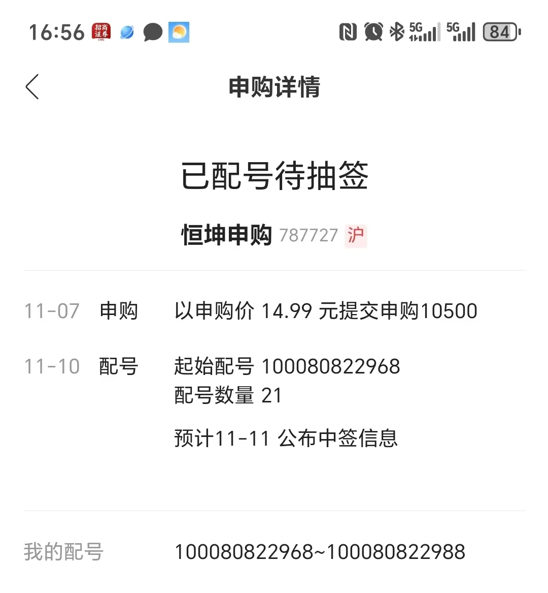 5位中签号8个:10802-10822,23302-23322,35802-35822,48302-48322,60802-60822,73302-73322,85802-85822,98302-98322