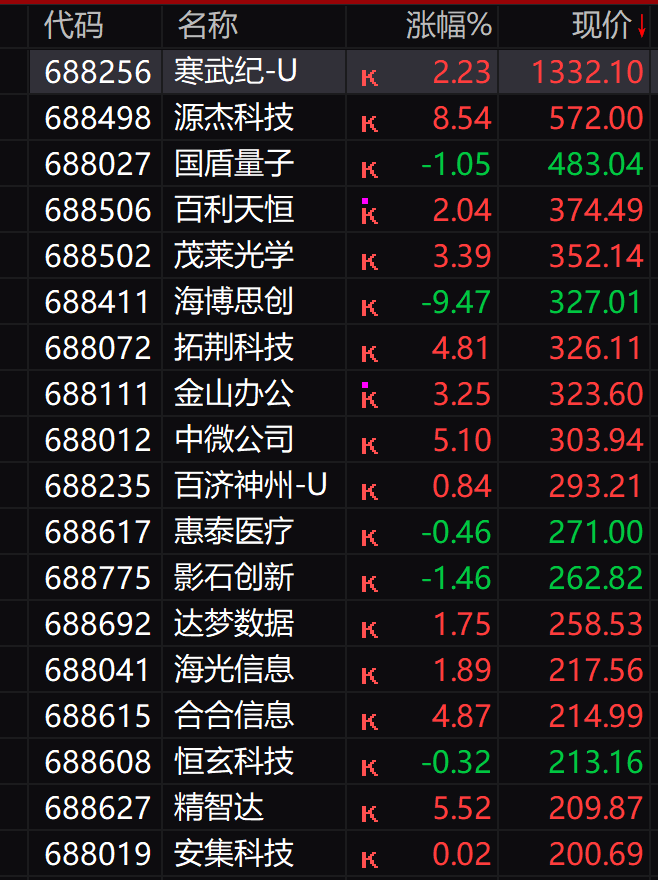 科创板高于200元的个股一览!一一N恒坤新材应该排前三!