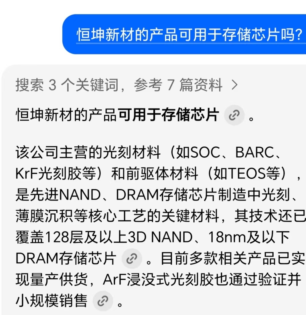 $N恒坤(SH688727)$ 实锤=恒坤新材是存储芯片不可缺少的重要材料