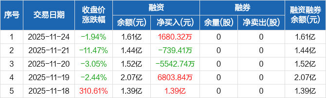 C恒坤:融资净买入1680.32万元,融资余额1.61亿元(11-24)