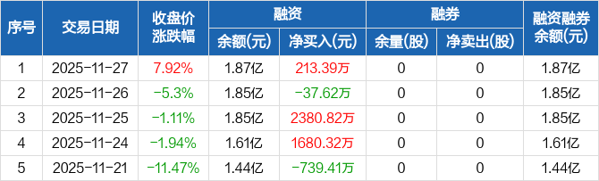 恒坤新材:融资净买入213.39万元,融资余额1.87亿元(11-27)