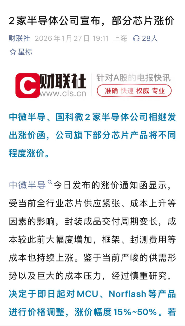 $恒坤新材(SH688727)$ 半导体行业各个细分领域看样子涨价潮慢慢开始延伸了