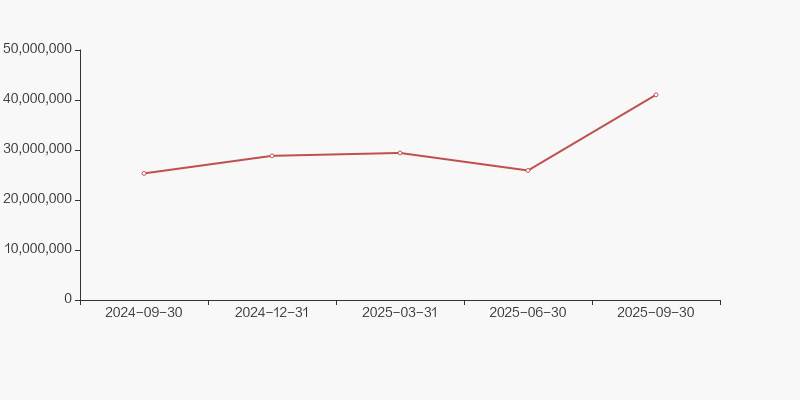 截至2025年9月30日,公司最新总股本为26.01亿股,其中流通股本为24.99亿股。户均持有流通股数量由上期的5.44万股上升至8.6万股,户均流通市值154.32万元。