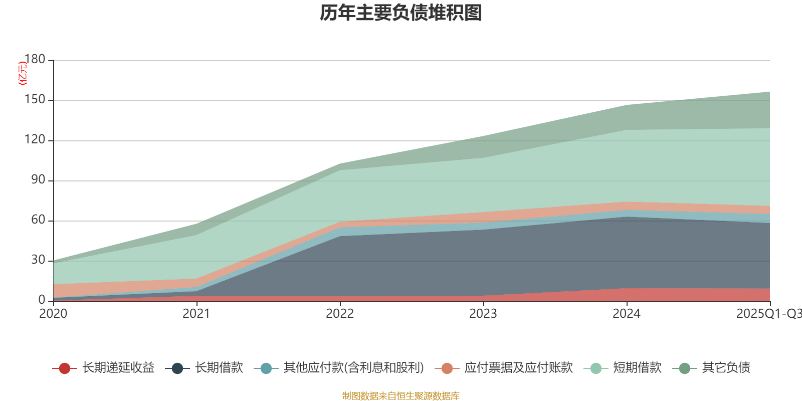 负债重大变化方面,截至2025年三季度末,公司长期借款较上年末减少8.32%,占公司总资产比重下降2.95个百分点;长期应付款合计较上年末增加312.5%,占公司总资产比重上升0.87个百分点;短期借款较上年末增加8.17%,占公司总资产比重上升0.81个百分点;其他应付款(含利息和股利)较上年末增加33.32%,占公司总资产比重上升0.62个百分点。