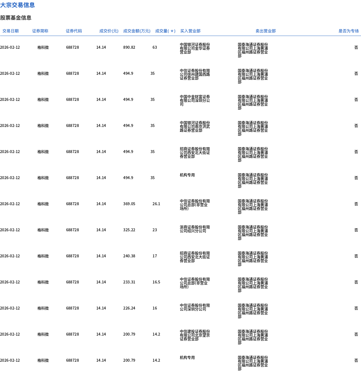 格科微今日大宗交易折价成交365万股,成交额5161.1万元