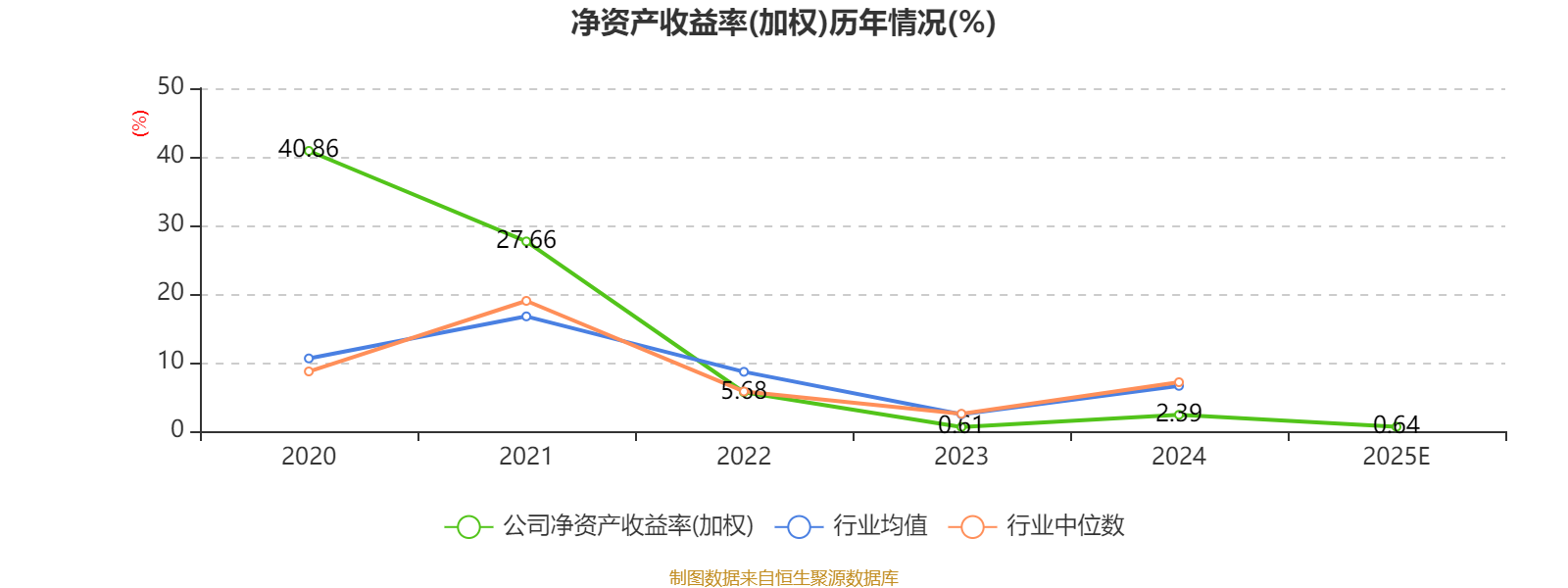 数据显示,2025年公司加权平均净资产收益率为0.64%,较上年同期下降1.75个百分点。