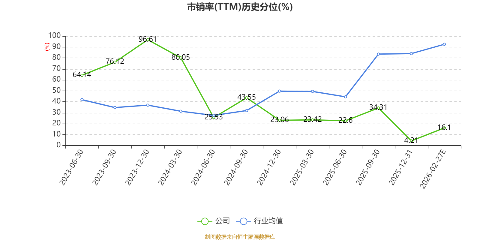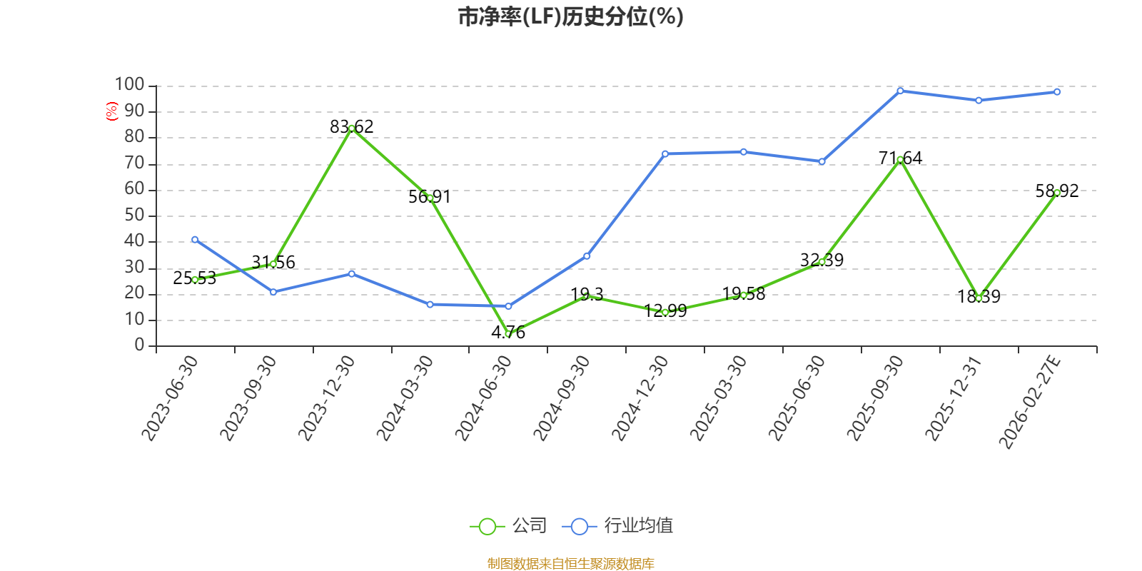 市盈率、市净率为负时,不显示当期分位数,会导致折线图中断。