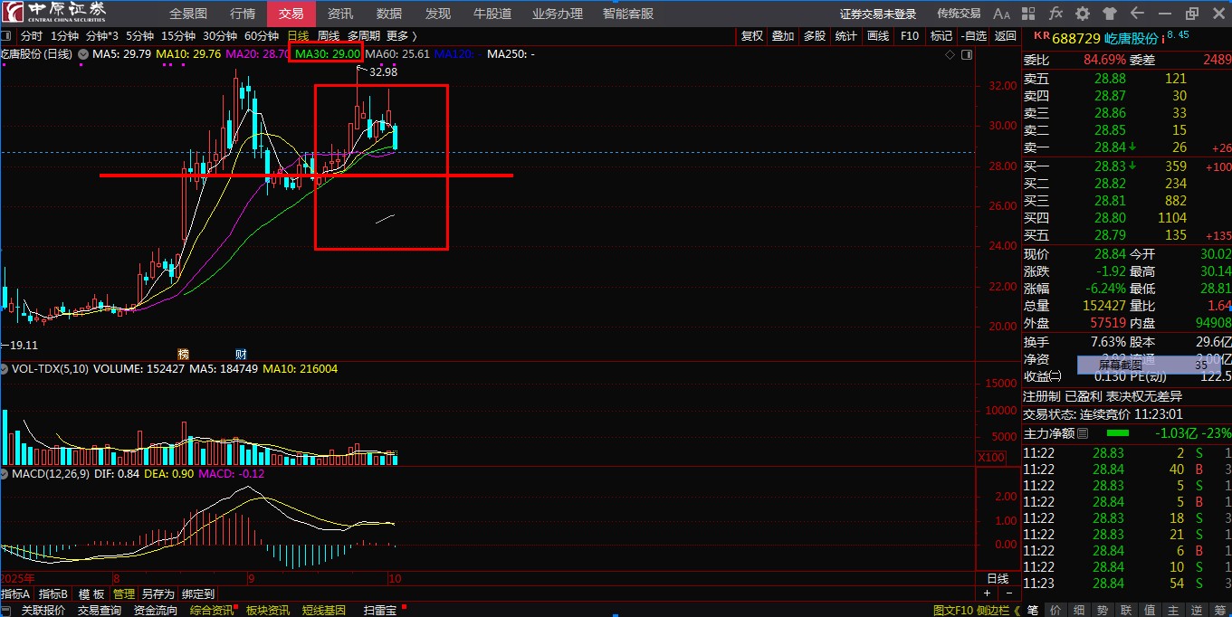 短期头部形态显现。多线显示刺骨短期有较深回调的可能目标26.5左右。