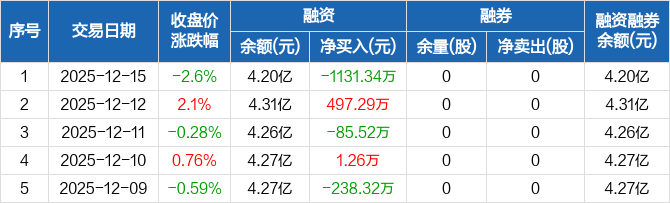 屹唐股份:融资净偿还1131.34万元,融资余额4.2亿元(12-15)