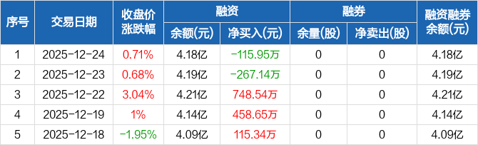 屹唐股份:融资净偿还115.95万元,融资余额4.18亿元(12-24)