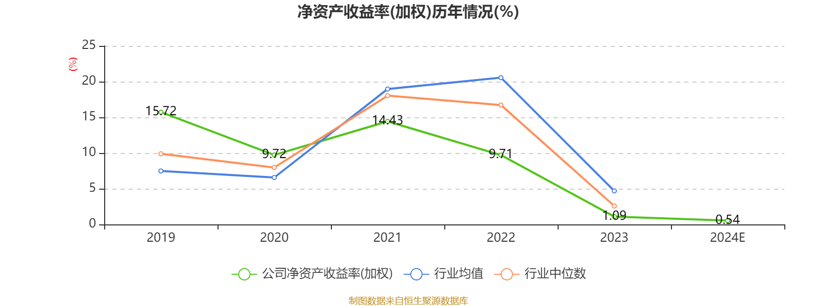 数据显示,2024年公司加权平均净资产收益率为0.54%,较上年同期下降0.55个百分点。