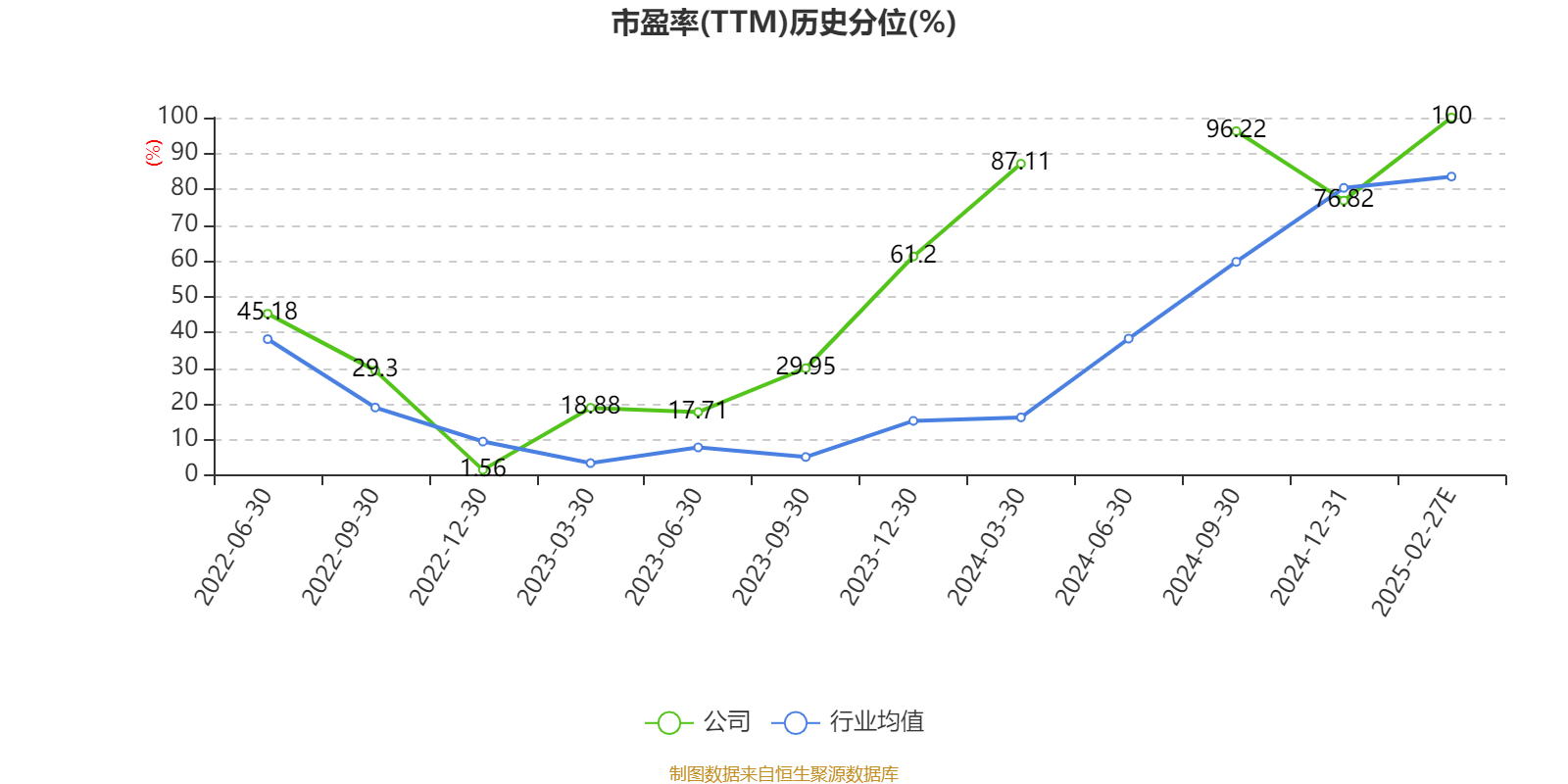 市盈率、市净率为负时,不显示当期分位数,会导致折线图中断。
