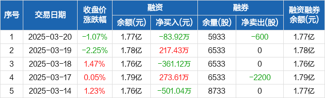 壹石通:融资净偿还83.92万元,融资余额1.77亿元(03-20)