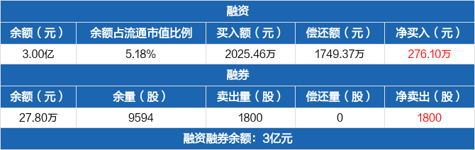 壹石通:融资净买入276.1万元,融资余额3亿元(12-31)