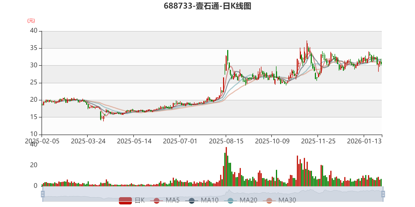 中证智能财讯壹石通(688733)1月29日晚间披露2025年度业绩预告,预计2025年实现营业收入6.2亿元至6.4亿元,同比增长22.89%-26.86%;归母净利润亏损1650万元至2450万元,上年同期盈利1200.41万元;扣非净利润亏损4900万元至5900万元,上年同期亏损2371.38万元。以最新收盘价计算,市净率(LF)约2.81倍,市销率(TTM)约9.68倍。