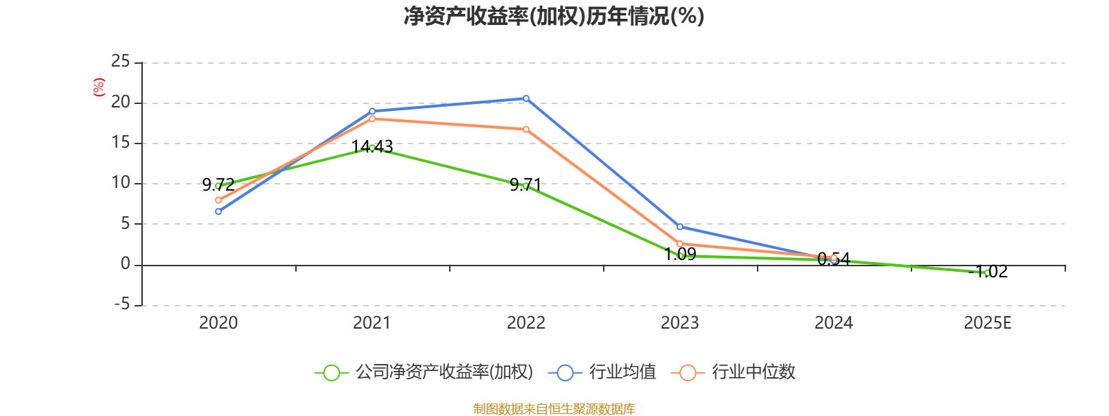 数据显示,2025年公司加权平均净资产收益率为-1.02%,较上年同期下降1.56个百分点。