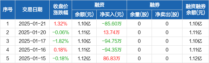 中自科技:融资净偿还85.6万元,融资余额1.1亿元(01-21)