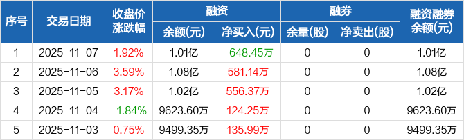 中自科技:融资净偿还648.45万元,融资余额1.01亿元(11-07)