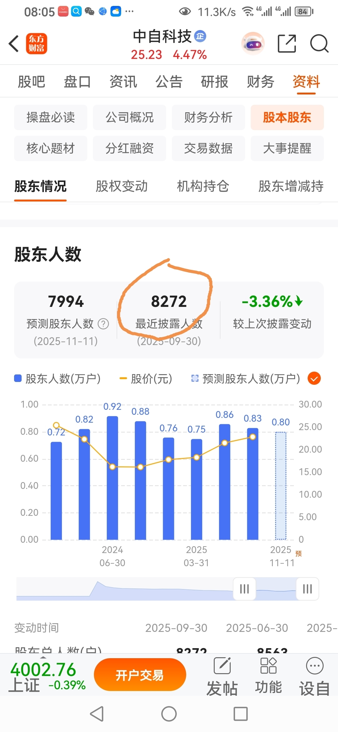 $中自科技(SH688737)$ 两市大概人口最少的股票。