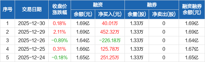 中自科技:融资净买入40.01万元,融资余额1.69亿元(12-30)