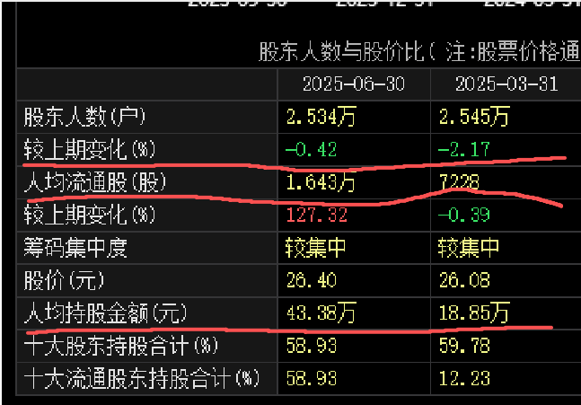 请教个问题 为什么股东人数只减少110人 减少0.42% 而人均流通股由7228股增加到1.643万股