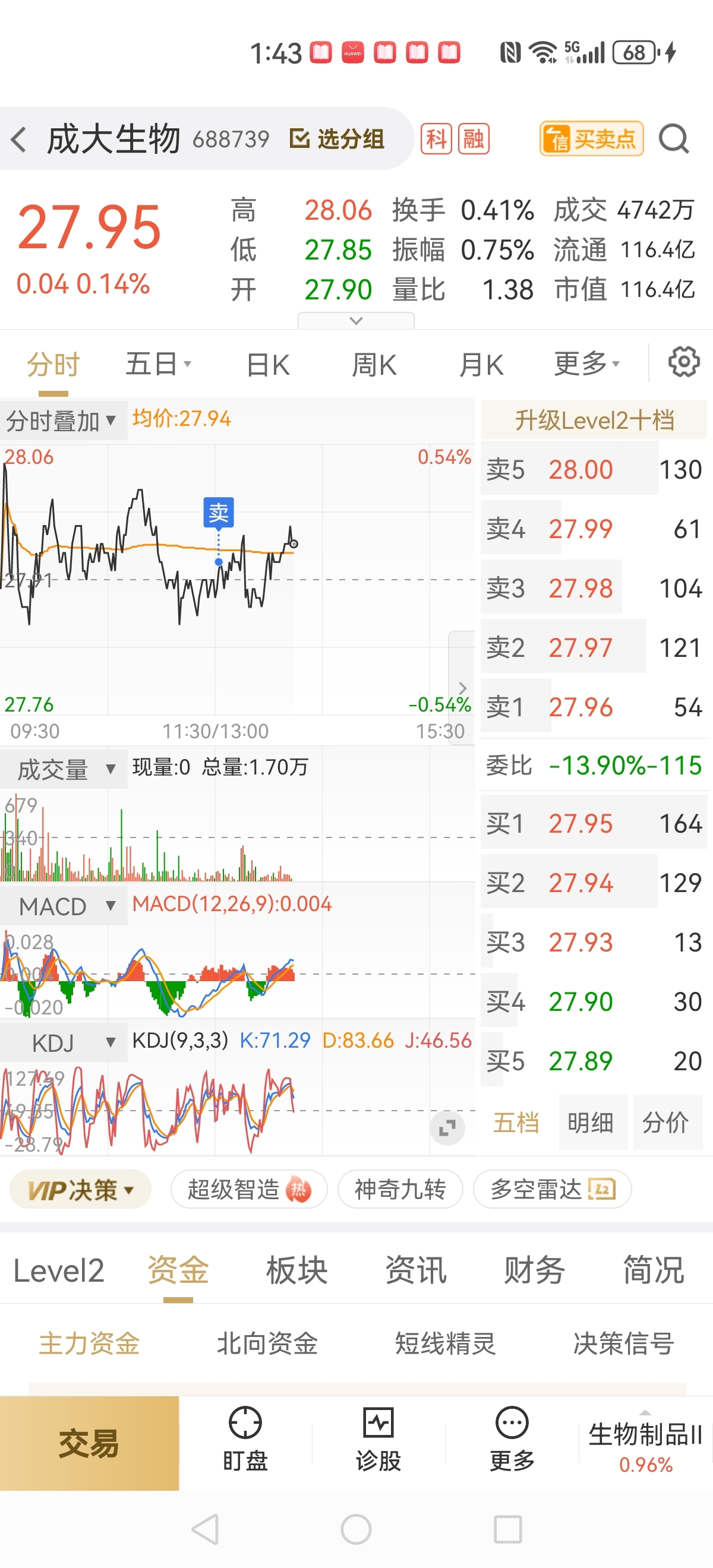 $成大生物(SH688739)$ 感恩感谢,卖成大买赛意信息