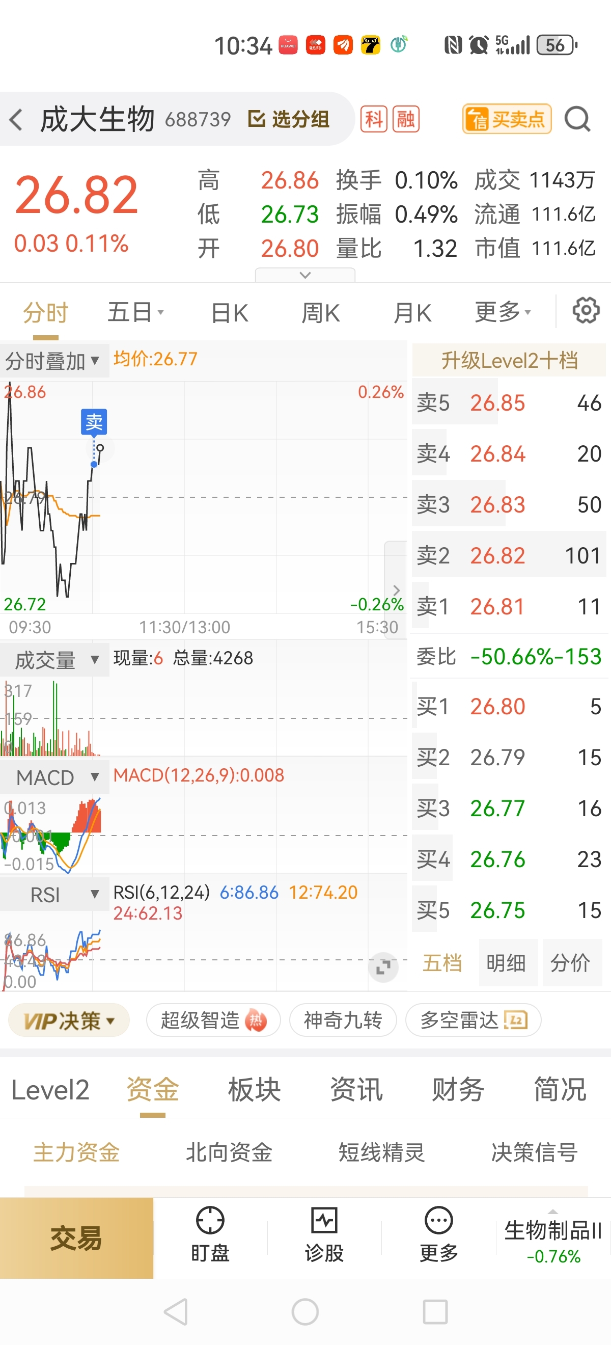 $成大生物(SH688739)$ 一动不动