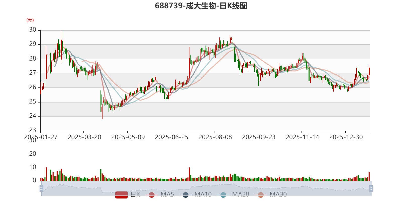中证智能财讯成大生物(688739)1月26日晚间披露2025年度业绩预告,预计2025年归母净利润1.23亿元至1.39亿元,同比下降59.34%-63.98%;扣非净利润预计3185万元-4777万元,同比下降85.25%-90.16%。以1月26日收盘价计算,成大生物目前市盈率(TTM)约为81.77倍-92.32倍,市净率(LF)约1.21倍,市销率(TTM)约7.76倍。