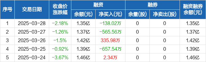 金天钛业:融资净偿还138.02万元,融资余额1.35亿元(03-28)