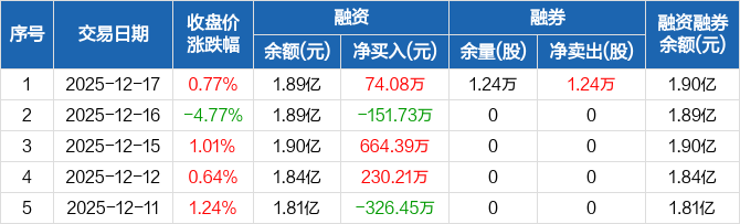 金天钛业:融资净买入74.08万元,融资余额1.89亿元(12-17)