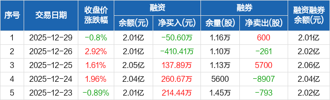 金天钛业:融资净偿还50.6万元,融资余额2.01亿元(12-29)