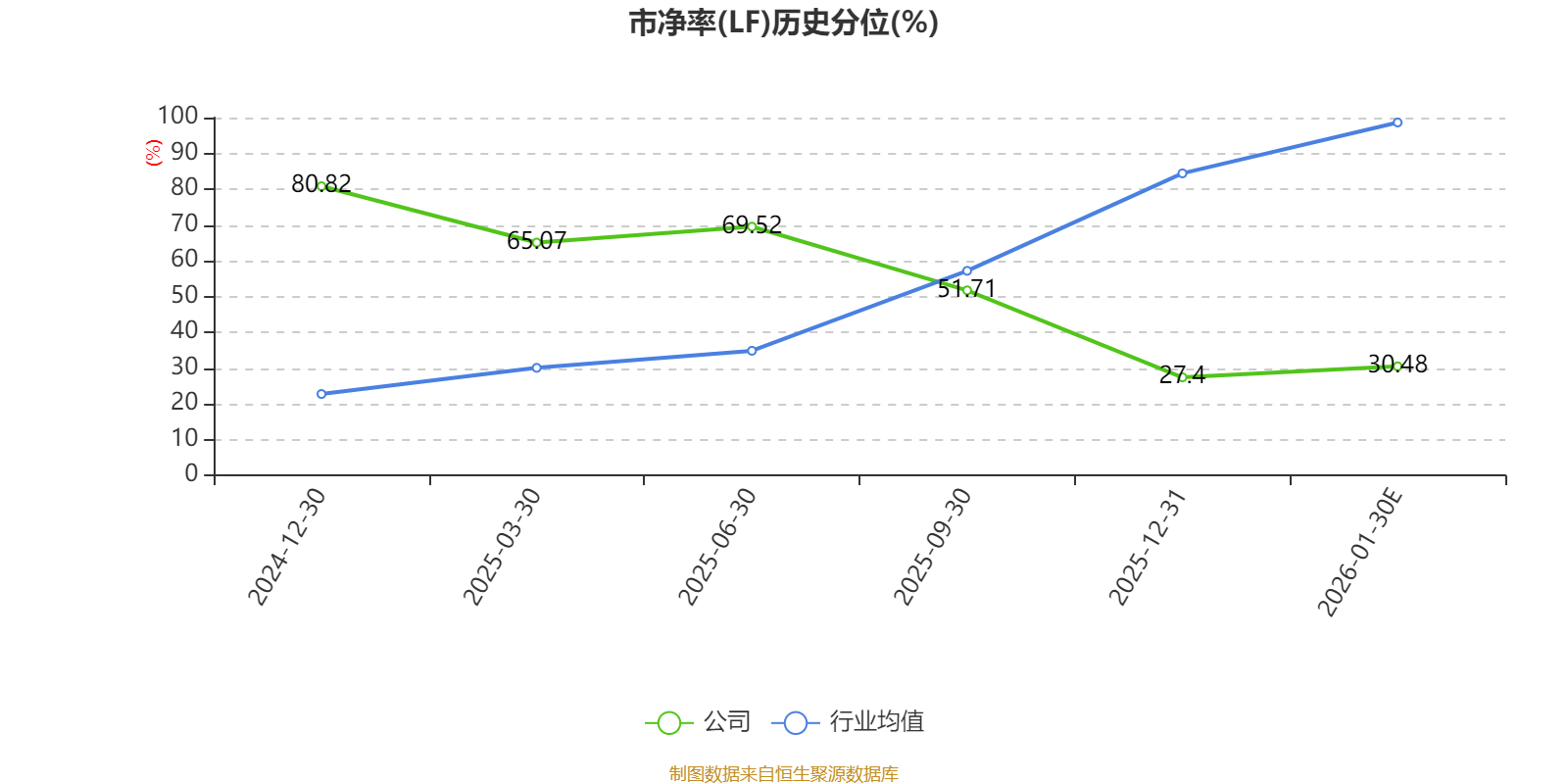 市盈率、市净率为负时,不显示当期分位数,会导致折线图中断。