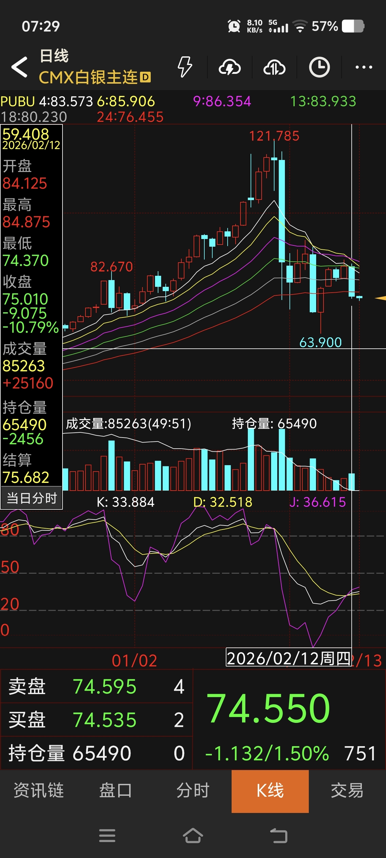 今天的大阴线难以避免了,贵金属大跌,十天春节长假期间外围大跌,节后依然跟跌