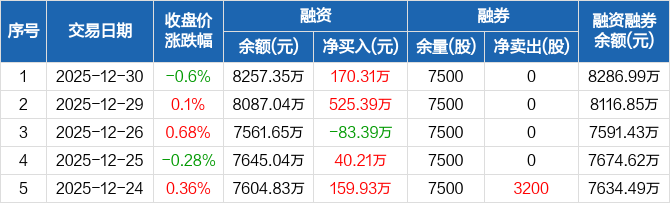 汉邦科技:融资净买入170.31万元,融资余额8257.35万元(12-30)