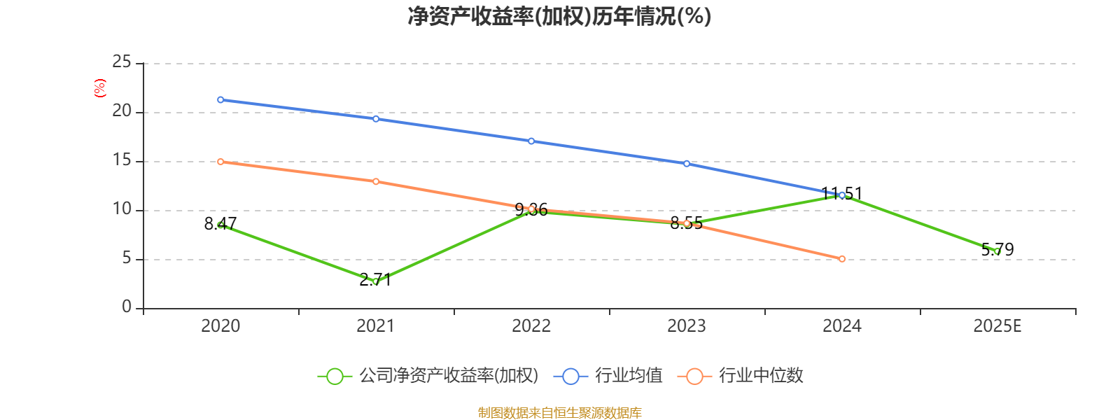 数据显示,2025年公司加权平均净资产收益率为5.79%,较上年同期下降5.72个百分点。