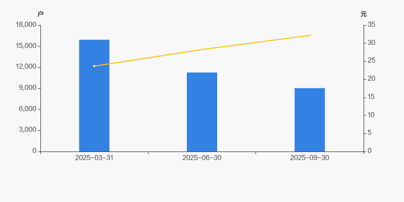 2025年3月31日至今,公司股东户数显著下降,区间跌幅为43.29%。2025年3月31日至2025年9月30日区间股价上涨36.00%。